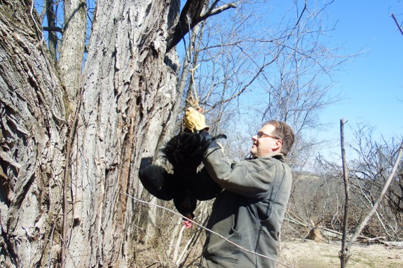 We have always just put two nails in a stump about 3/4 an inch apart, just so the neck fits but the head don't slid out, sharpen the hatchet and one blow severs the neck. You can hold them but if it's grassy just let them go and fill the wheelbarrow when your done.