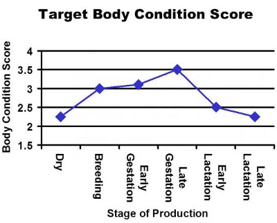 The image to the right is a quick cheat sheet on body-condition goals for milk goats, stolen from this page.