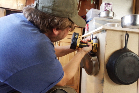 Love those mug hooks - such a clever space-saving way to store the skillets. And somehow I think they'll stay cleaner than if they were hanging from the ceiling - might just be wishful thinking.