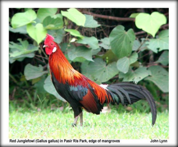 Red Jungle Fowl roosters look just like Rhode Island Reds to my
