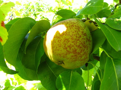 "It took three to five years for most of the apples to start to fruit; the lower--and some of the upper--apples are standard, but heavily pruned.