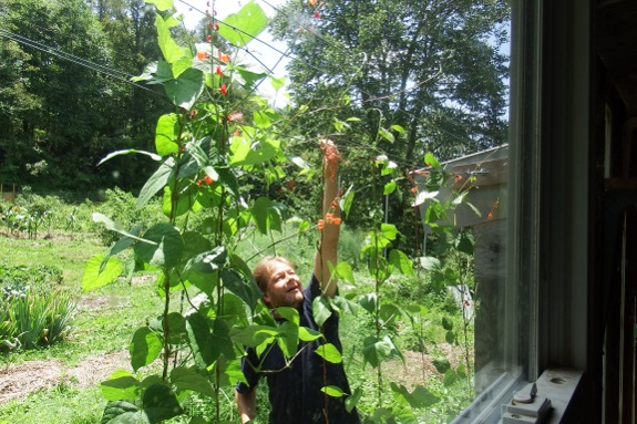 I planted bush Kentucky Wonder beans with my tomatoes. Two of them are well over 12 ft! The rest I used smaller supports so they are now growing toward the ground now. I need to add shade cloth so I will me pruning back to 7 ft.