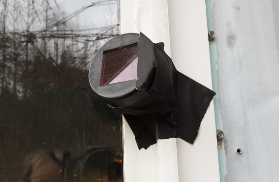 The trick to getting the Solar Christmas lights to last longer was mounting the cell outside at an angle with some gaffers tape.