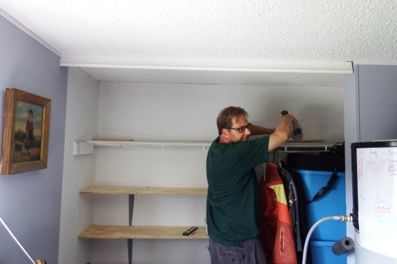 Installing a couple of shelves for Anna's closet and securing the top shelf.