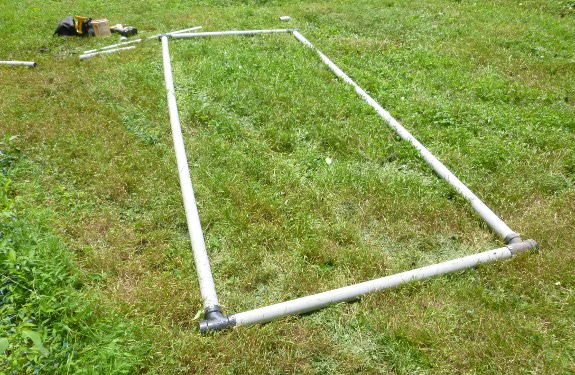 This PVC frame will be a new chicken tractor to replace the primitive chicken tractor we are still using.