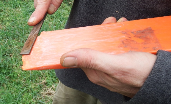An angle grinder would be the best way to sharpen the wedge plus it could be used to sharpen lawn mower blades and brush blades from the weed eater. I THINK I paid twenty dollars for mine.