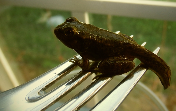 tank itself, I fished the baby frog out with a fork and gave him a sky