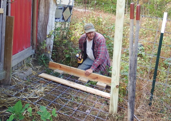 When i had hogs i would weld angle iron, small stu#, one half or three quarter inch around the welded wire panels, if you would buy and cut the angle iron it only takes minutes to weld up. Uses half inch pipe chunks welded to that for the hinges. Drop a rod down through two of them pieces of pipe and you had a gate.