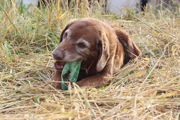 Lucy likes to find plastic bottles floating in the creek and chew them to death.