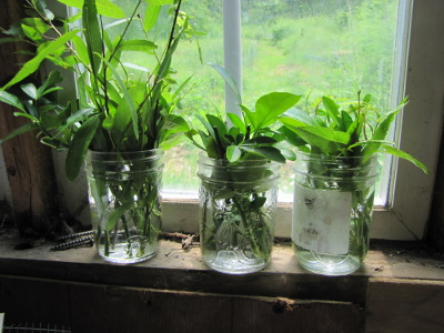 cuttings down to four inch lengths and plopped them in glasses of water