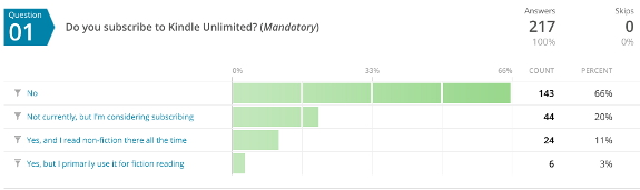 Kindle Unlimited. Among my blog and email list audience, only 11% of you